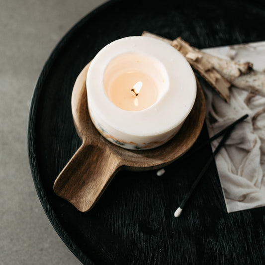Each Munio candle is lovingly handmade in our studio by skilled candle masters, using natural soy and rapeseed wax infused with pure, natural fragrances. We decorate them with flowers and herbs gathered from the wild beauty of Northern nature. Bring the scent and spirit of the nature into your home.